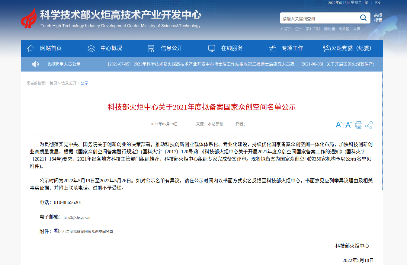 根据科技部火炬中心5月19日发布的《关于2021年度拟备案国家众创空间名单公示》,我市沙澧众创空间晋级国家队行列。这是我市首个国家级众创空间。